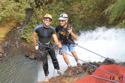 Cachoeira ideal para a prática de rapel para iniciantes, ela também conta com um excelente poço para banhistas com águas bem frias.
